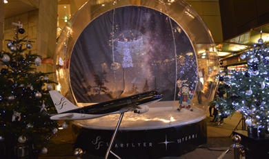 九州に初のスノードームが出現!人が入れる巨大なスノードーム。白いフレークが舞上がると、ドーム内はまるで本物のような雪景色になります。フォトスポットとしてもオススメです。ドーム体験日は28日(土)、29日(日)の12:00〜20:00です。スノードームの設置は11/29(日)迄ですが、スターフライヤースペシャルツリーは12/25(金)迄お楽しみいただけます。