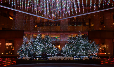 キャナルシティ博多のクリスマスイルミネーションにお越し頂き、スターフライヤースペシャルクリスマスツリーをお楽しみください。(12/25(金)迄)