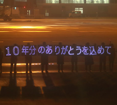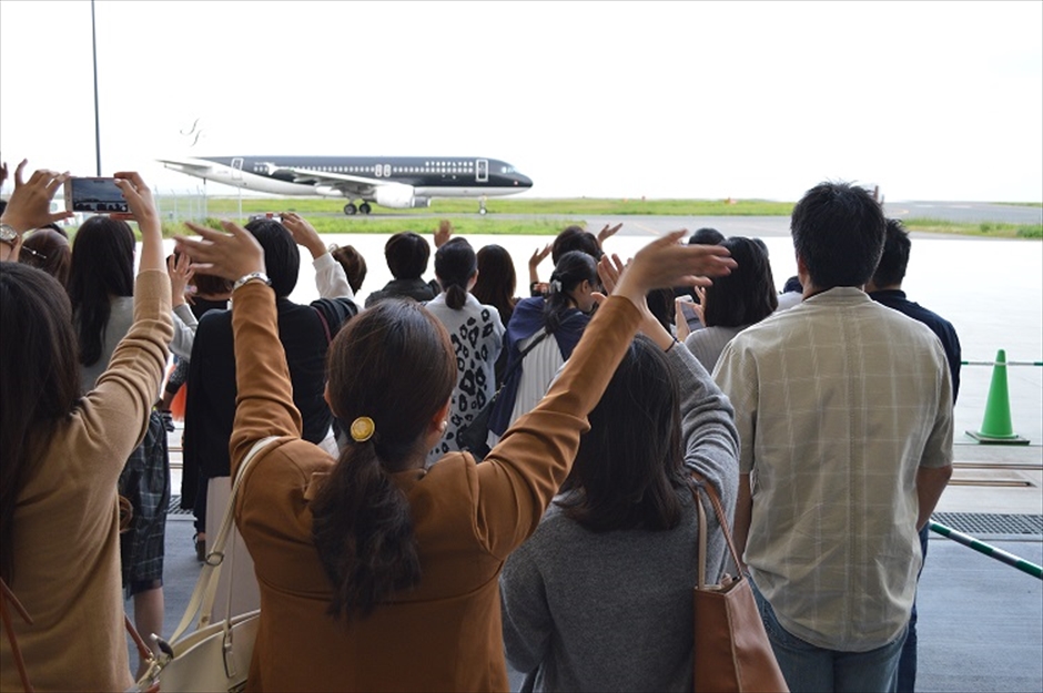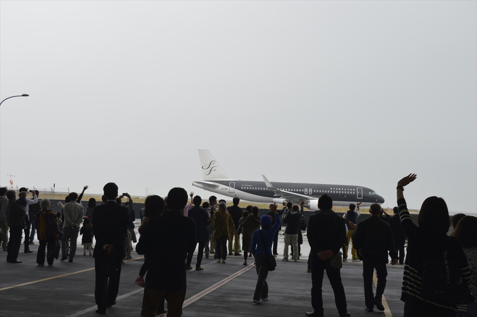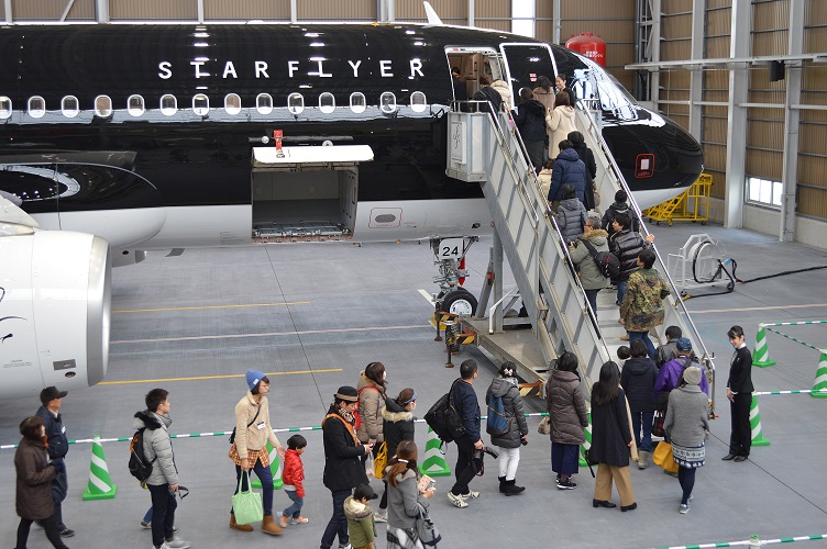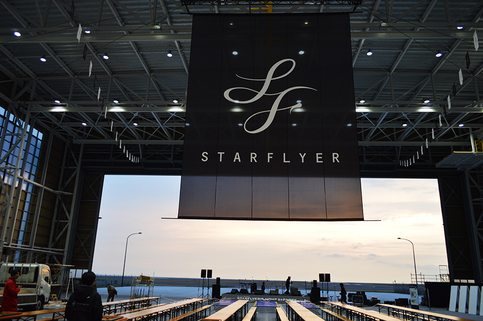 これまでの10年を支えていただいた感謝とともに、これからの10年に向けた新しいスターフライヤーを感じていただくため、就航10周年のフィナーレ企画として、「STARFLYER 10th ANNIVERSARY NEW STAR EXHIBITION」を開催いたしました。12月に受領したばかりの新造機JA24MC、客室乗務員および地上係員の新制服、機内ボーディングミュージックの「3つの新しい」を格納庫にてお披露目いたしました。