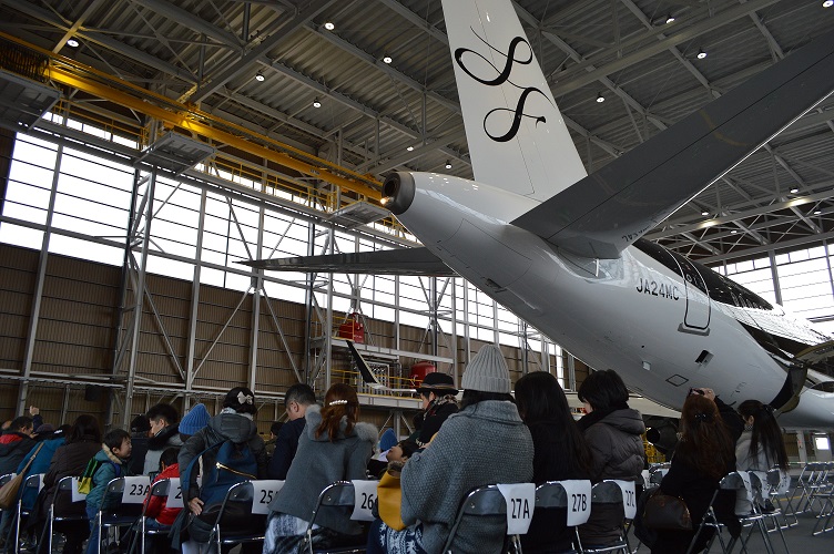またトレーニングセンターではパイロットが訓練に使用するフルフライトシュミレーターや客室乗務員が訓練に使用する客室モックアップの見学会が行われました。