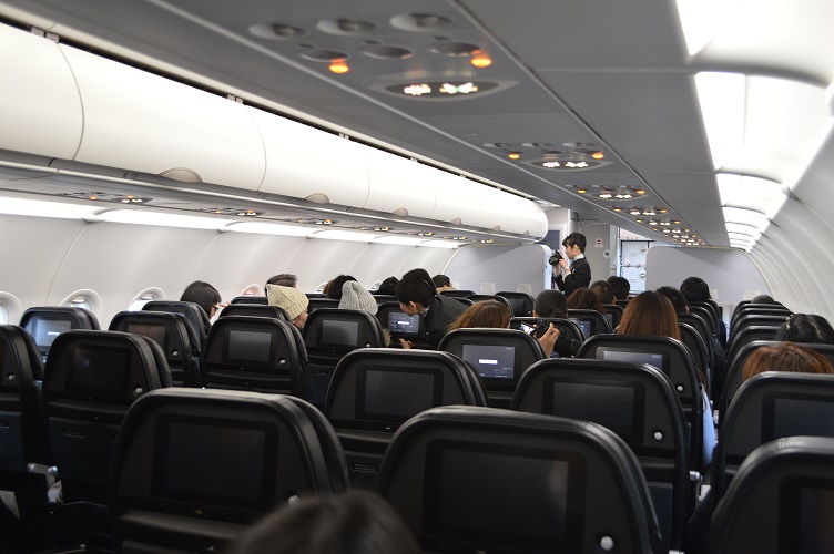 レザーシート、普通の航空機よりもシートの間隔も広い。
