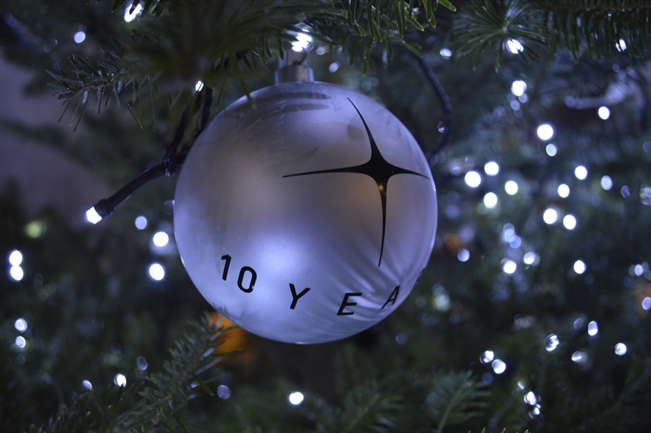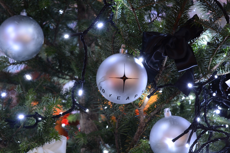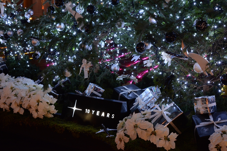 「キャナルシティ博多のクリスマスイルミネーション」の一環として、B1Fサンプラザステージにスターフライヤーカラーの特別装飾で飾られたクリスマスツリーを設置しました。