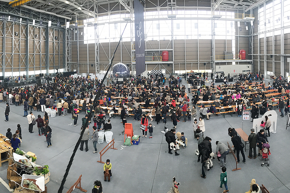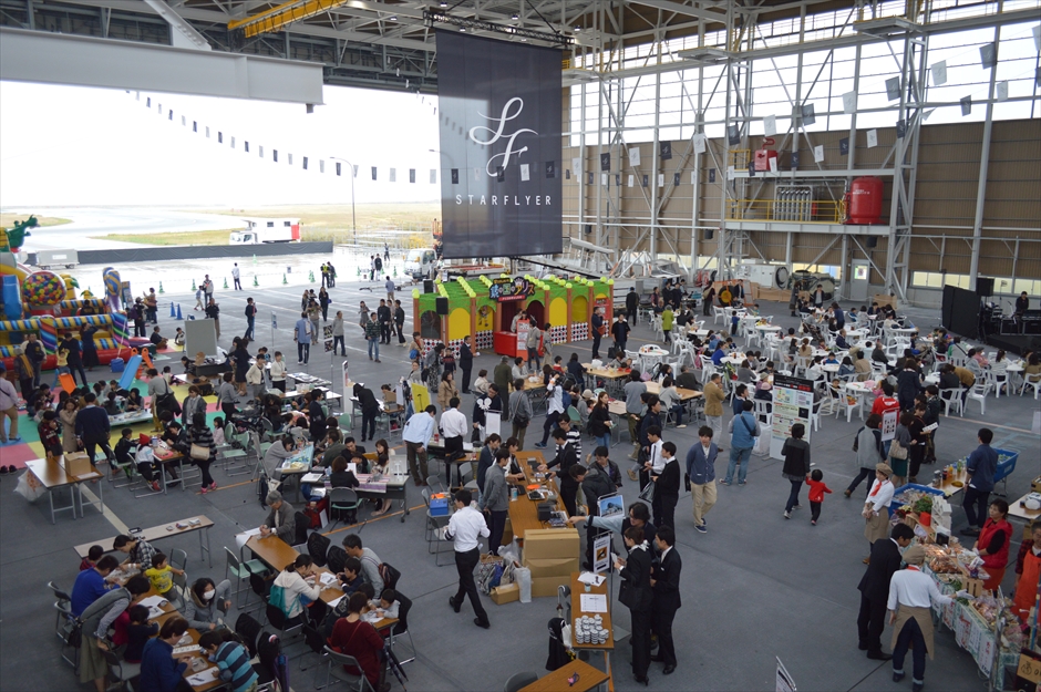 メイン会場となった格納庫では、目の前の滑走路から飛び立つ飛行機を間近に見ることが出来、また食事や音楽、お子様向けの様々なアトラクションや企画をお楽しみいただきました。