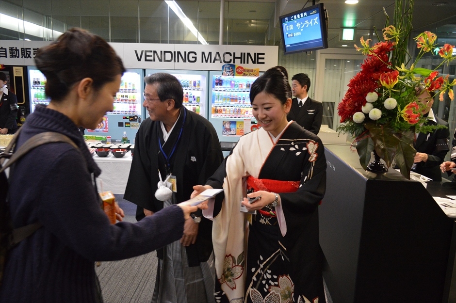 10周年イヤーのスタートとして、ご搭乗者様の「これからの10年の夢や目標」を乗せ、2016年初日の出フライトを実施しました。当日は天候も良く、鹿児島上空で初日の出を迎えました。就航10周年に合わせ、パイロットを目指す男の子など、10歳のお子様へサプライズプレゼントをお渡しいたしました。さらに機内では、10年後のご自身やご家族に向けたタイムカプセルレターをお書き頂きました。