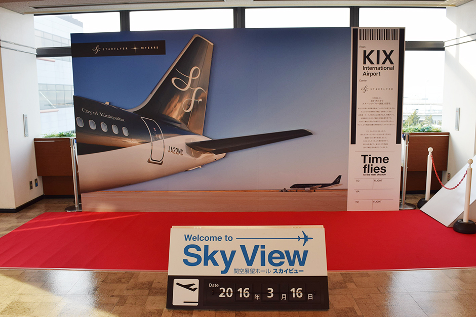 関西空港にある関空展望ホール“Skyview”にて、スターフライヤーの10年の軌跡を集めた展示やイベントを実施しました。