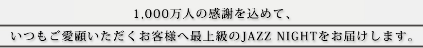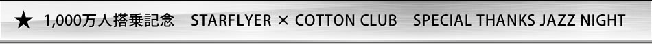 | 内容 | 1,000万人搭乗記念 STARFLYER × COTTON CLUB SPECIAL THANKS JAZZ NIGHTによるジャズ演奏(お食事・ドリンク付き) |