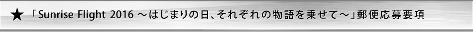 | ご応募者のお名前 フリガナ ご年齢 性別 電話番号 ※当選のご連絡をさせていただきますので平日に連絡のつく電話番号をお願いします 郵便番号 ご住所 メールアドレス(お持ちでなければ無記入で結構です) ご搭乗者の人数 これからの10年の夢や目標をご記入ください。(必須) |
