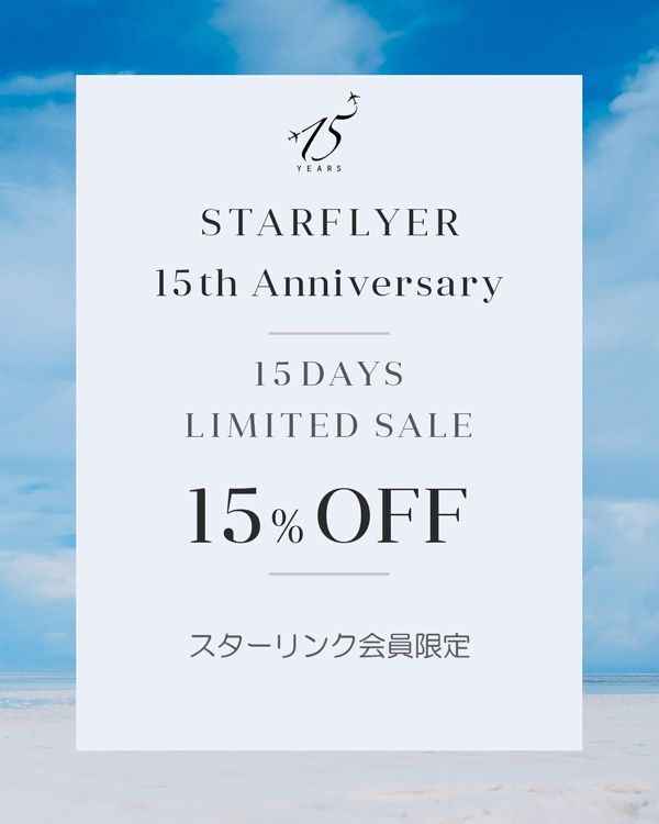 就航15周年を記念して、提携サービスでおなじみのフラッシュセールサイト「GILT」で15日間使える全品15%OFFクーポンを、スターリンク会員限定でご用意!