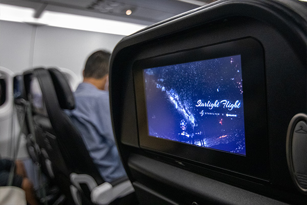 プラネタリウム上映フライトならではの、機内も窓の外も星にかこまれる体験をご堪能ください。