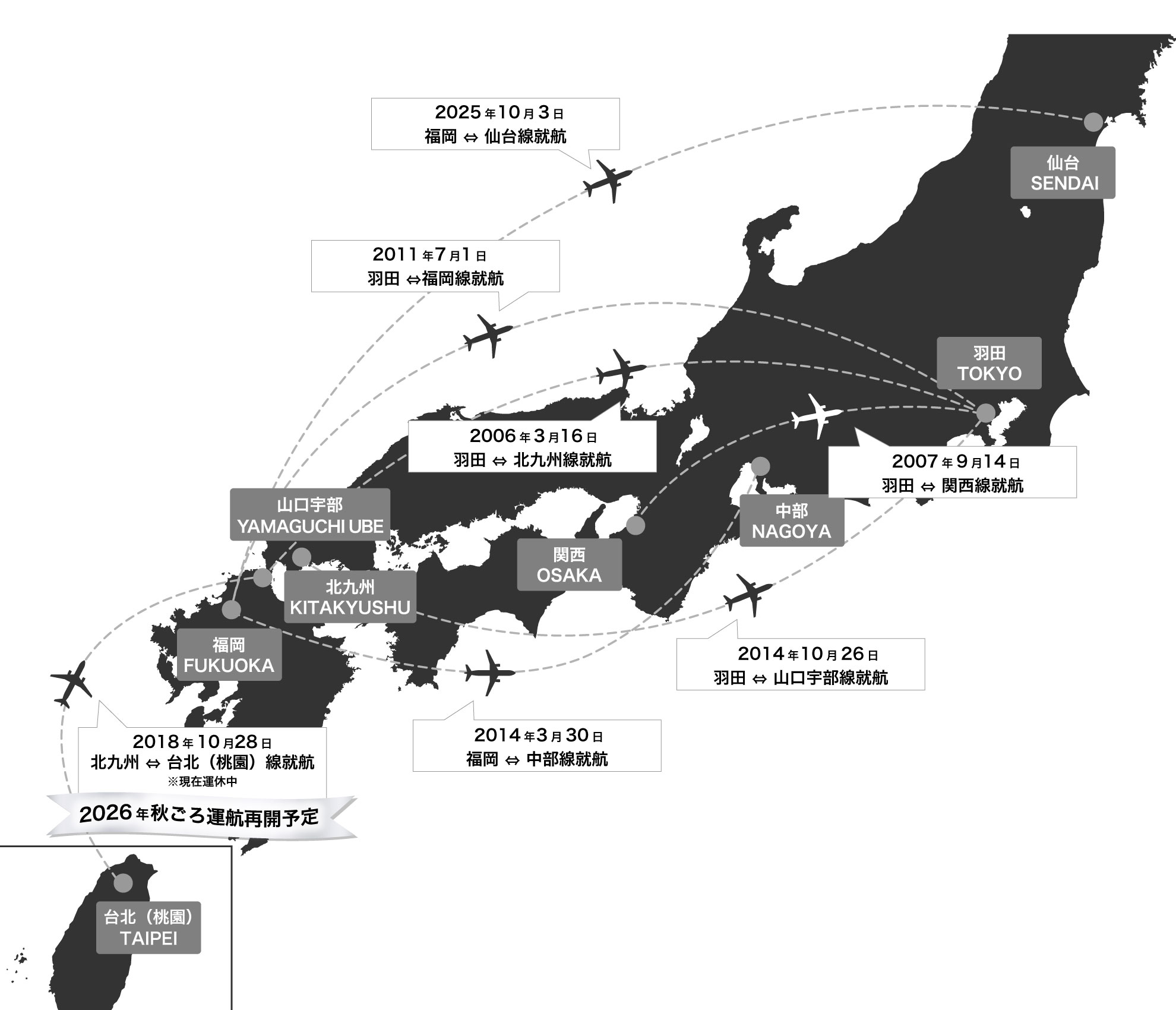 北九州 - 台北、中部 - 台北就航