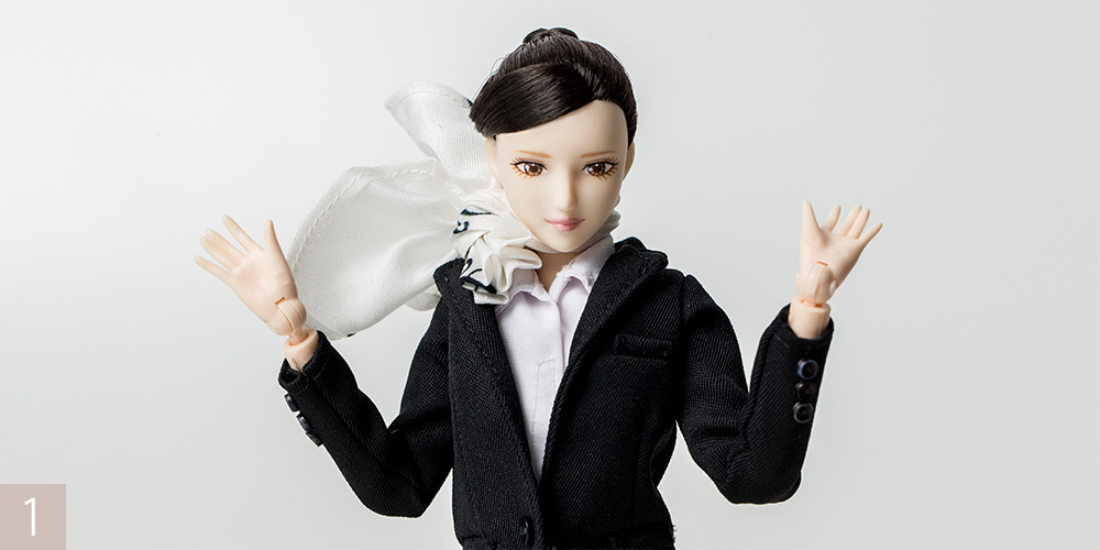 人形制作をお願いしたのは、可動式ボディのパイオニア「オビツ製作所」。長年使われた初代CA制服の生地とオビツボディを採用したこの人形は、社員の想いとオビツ製作所の職人技が生み出した、まさに渾身の一体です。