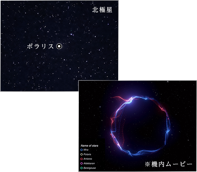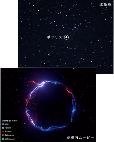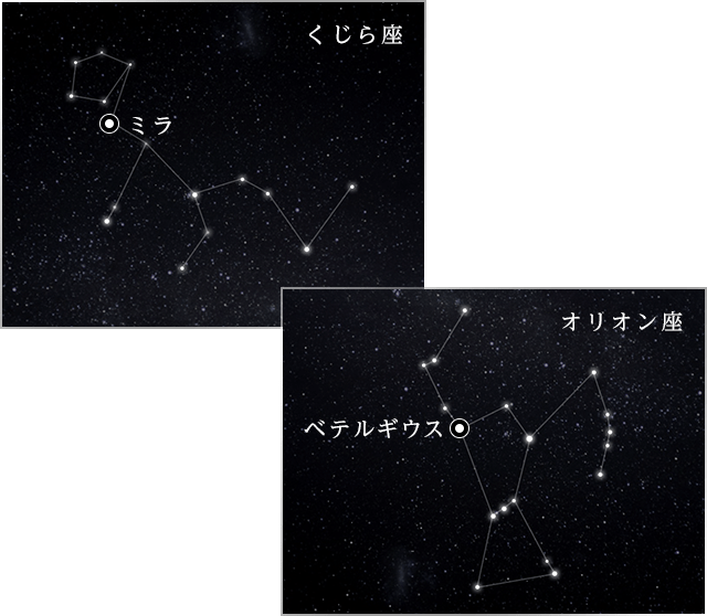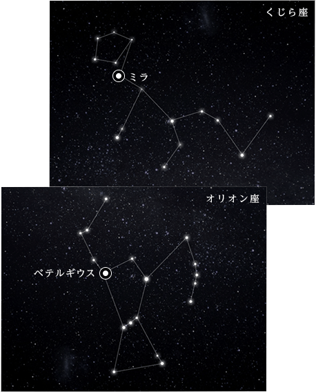 「Star Chorus」に登場する星は、5つ。くじら座のミラは明るさが変化する星として16世紀から知られていたほど、もっとも有名な変光星のひとつです。質量が大きい星の一生が終わりに近づくと、膨れて巨大化していくのですが、オリオン座のベテルギウスとさそり座のアンタレスはまさにこの時期で、赤色超巨星で赤く輝く星として知られています。アルデバランはおうし座の1等星で、ポラリスは言わずと知れた北極星です。