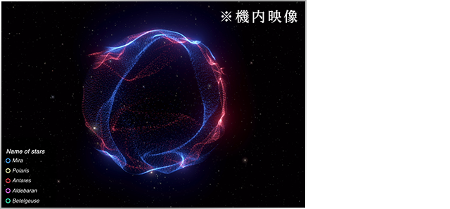 アンタレスは弦楽器、アルデバランは低音のベース、ポラリスはピアノ。ベテルギウスはサウンドエフェクト(効果音)、もっとも変化の激しいミラの動きは電子音で表現しています。