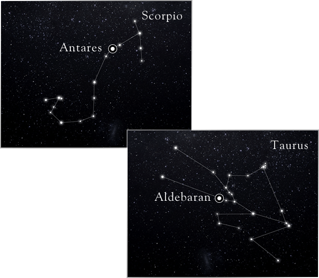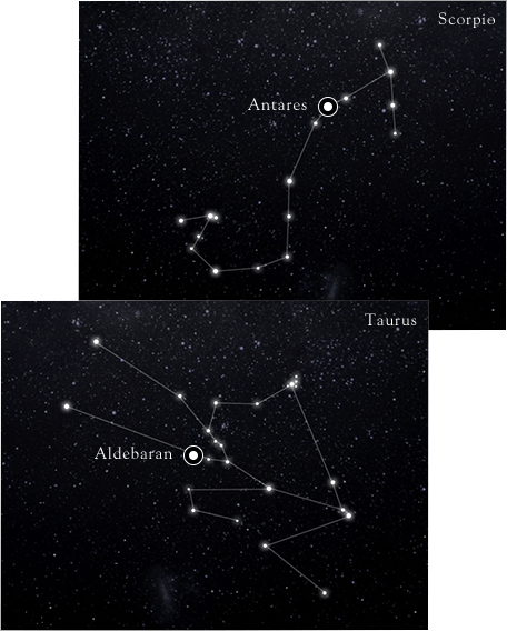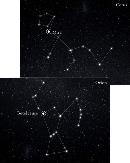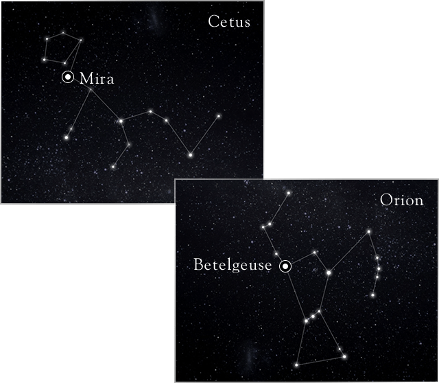 Five stars are featured in “Star Chorus.” Mira of the Cetus constellation is one of the most famous variable stars, known for its fluctuating brightness as early as the 16th century. A star with large mass will swell and become enormous as its lifespan comes to an end; Betelgeuse of the Orion constellation and Antares of the Scorpion constellation are exactly at this stage and are known as red giant super stars that sparkle in red. Aldebaran is a first-magnitude star of the Taurus constellation, and Polaris is, of course, the North Star.