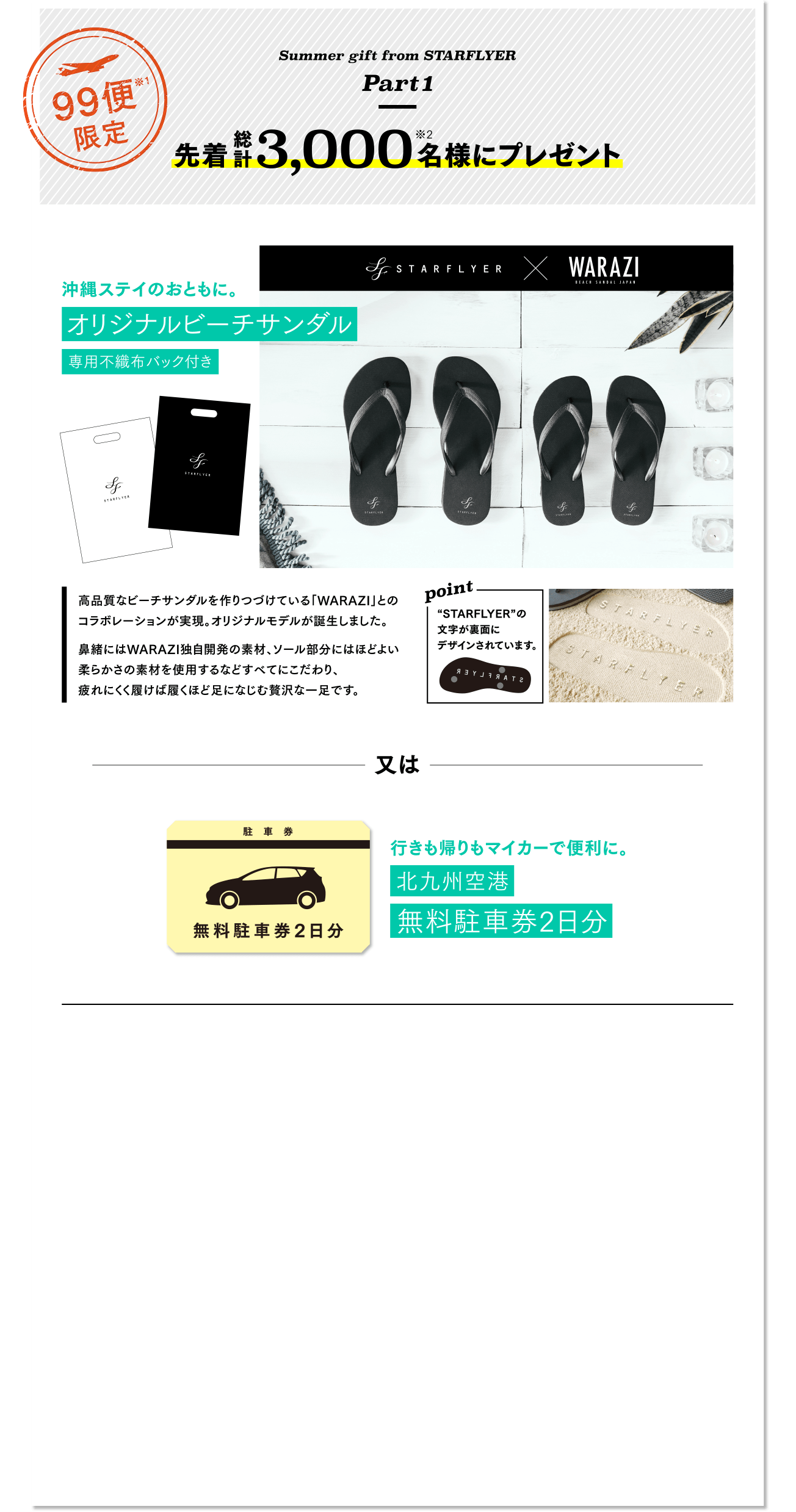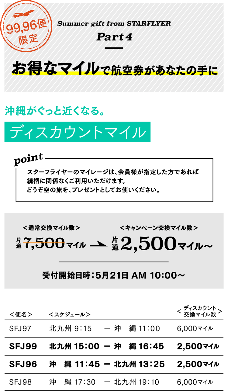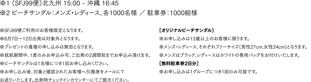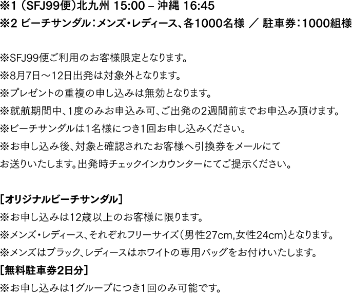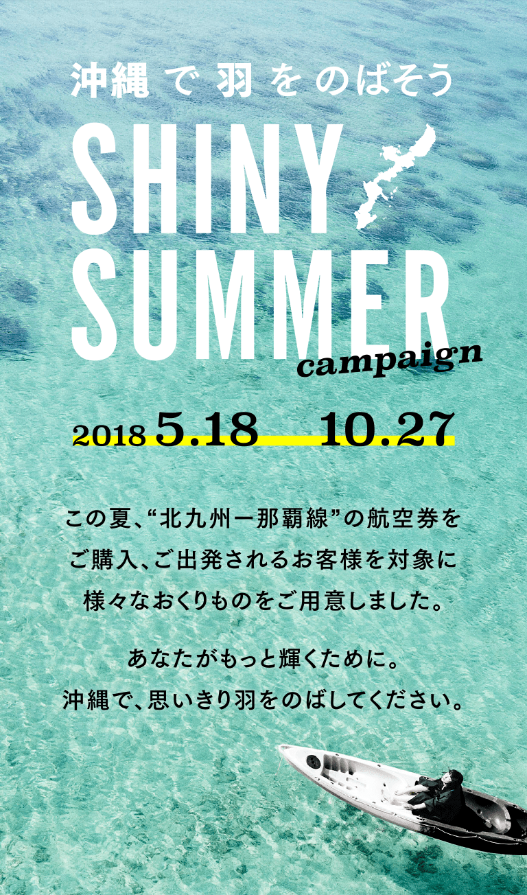 | 対象のお客様 | キャンペーン期間中、北九州⇄那覇(沖縄)線の航空券をご購入いただいた方 |