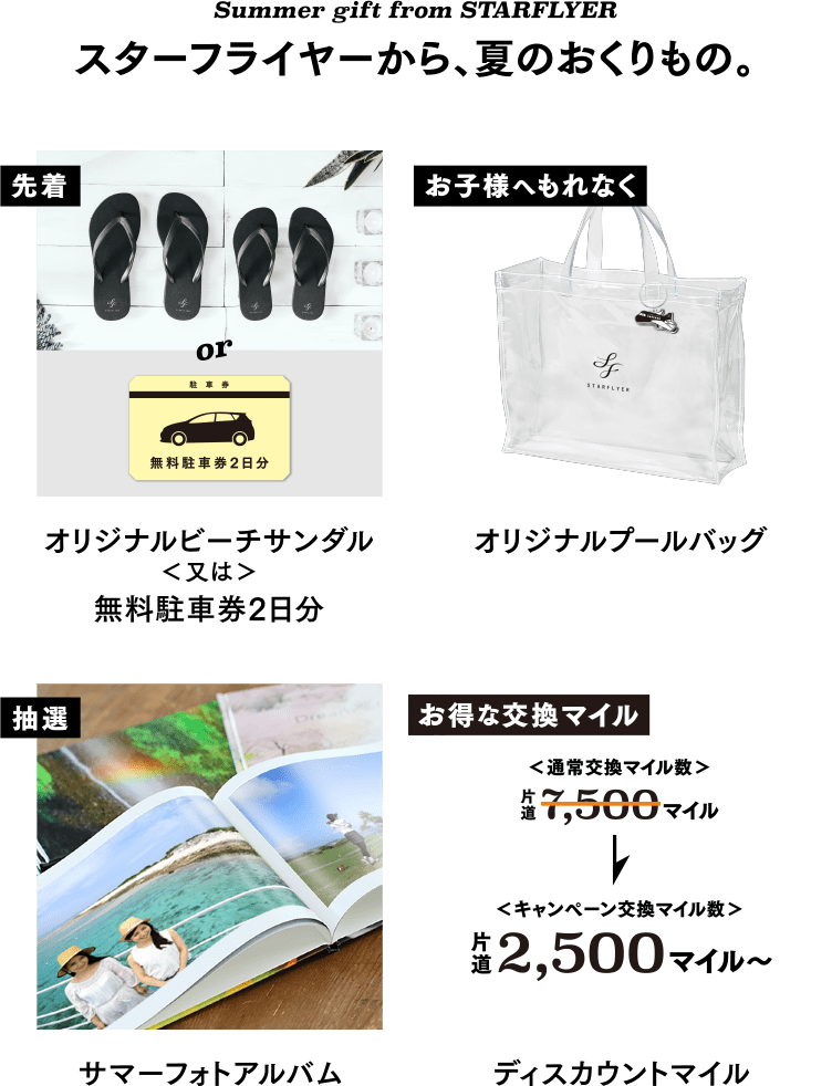 | お問合わせ | スターリンク事務局(TEL 0570-07-1001)もしくはスターフライヤー公式WEBサイトからお願いします。 |