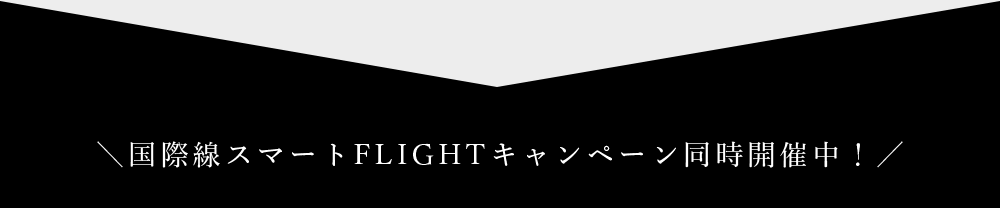 - ・期間中に当社便(国際線)にご搭乗いただいた場合、同時開催中の「国際線スマートFLIGHTキャンペーン」500マイルクーポンは適用となります。以下国際線キャンペーンページよりエントリー下さい。