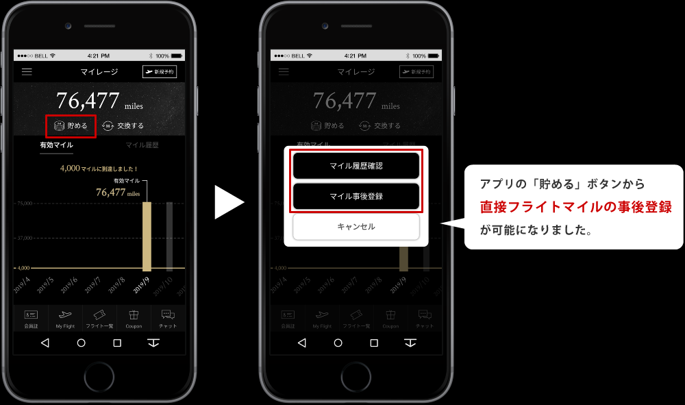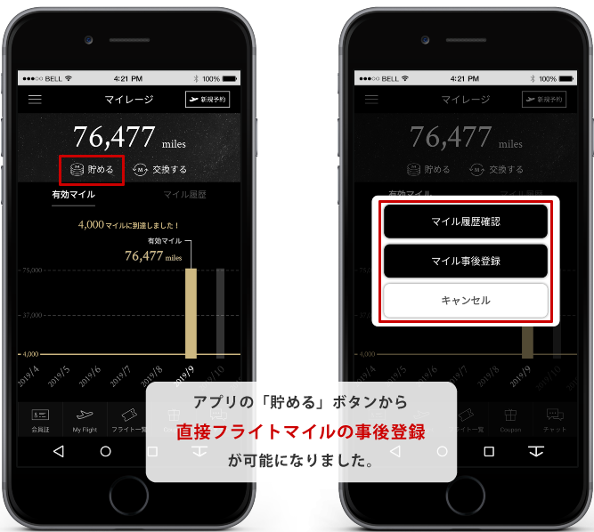 アプリからのマイル交換/フライトマイルの事後登録が便利に!