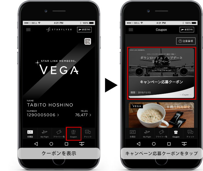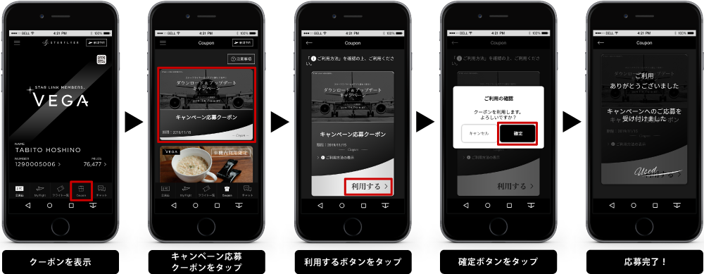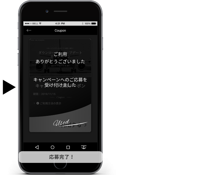 クーポン到達のプッシュ通知が届かない場合でも、対象のお客様にはクーポンが配信されておりますので、クーポン一覧よりご確認ください。 - 当選者の発表は、マイルクーポンの配信をもって代えさせていただきます。マイルクーポンの配信は、12月上旬頃を予定いたしております。