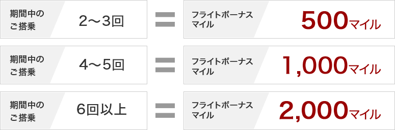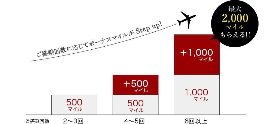 ご搭乗回数に応じて最大2,000マイルをプレゼントいたします。