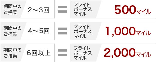 (通常の搭乗積算マイルとは別に付与いたします) - ※期間中のご搭乗であれば何度でも対象となります。