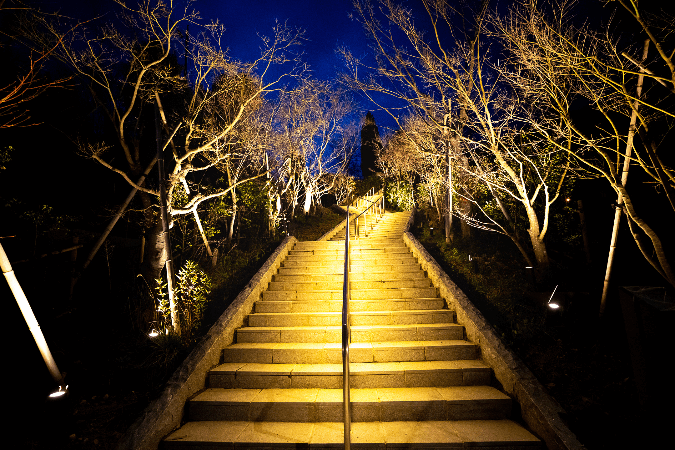 自然美を際立たせる間接照明。夜の散策を素敵に演出します