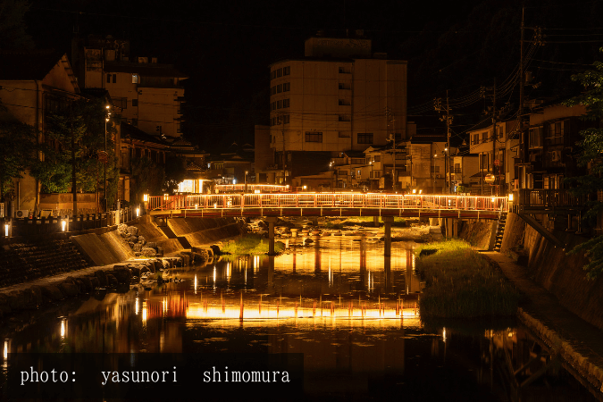 音信(おとずれ)川を中心に曙橋や街道を彩る木々が暗闇に照らし出され、自然美や造形美を身近に感じさせる幻想的な空間を醸します。