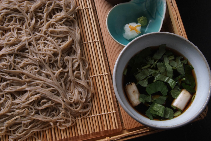 いちばんの人気メニューは、蕎麦をメインにした創作和食のセットコースだそう。油谷の山の澄んだ水をふんだんに使って手打ちされる蕎麦は、こだわりの二八(にはち)蕎麦。ツルッと滑らかな喉越しと、蕎麦の豊かな風味が堪能できます。本わさびと「おろしがね」が付いてくるので、擦りたてのわさびをお好みで。