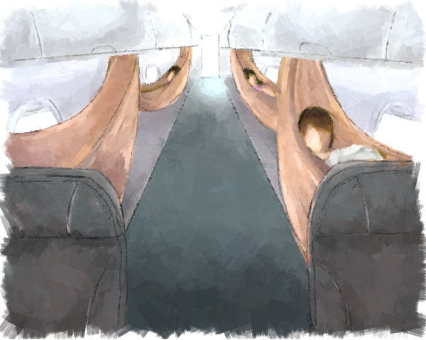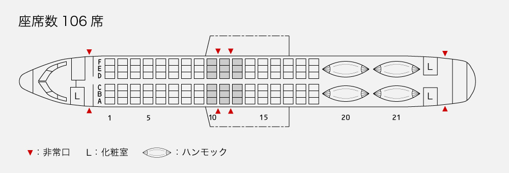 座席20列目以降の座席をあえて外し、ハンモックを設置しました。