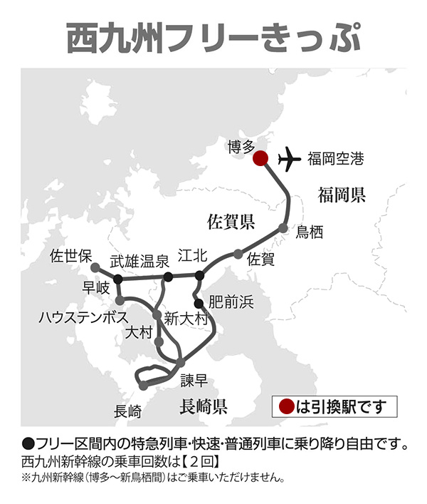| 西九州フリーきっぷ (西九州新幹線2回乗車可) |