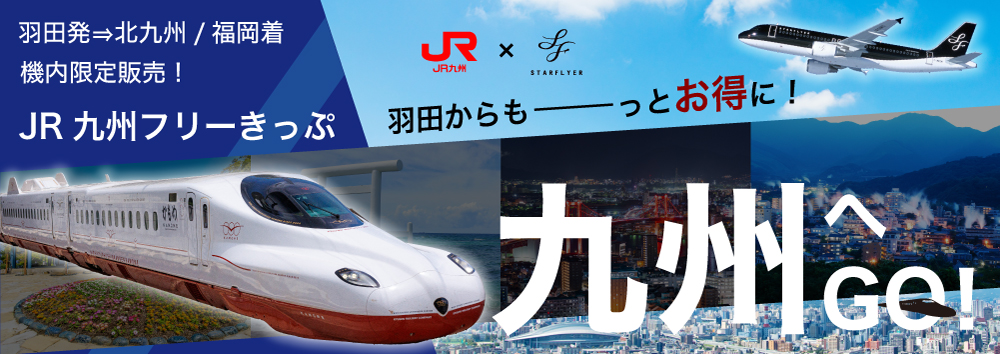 スターフライヤー対象路線の機内限定販売で、JR九州が提供する乗り放題周遊チケット「JR九州フリーきっぷ」をご購入いただけます。