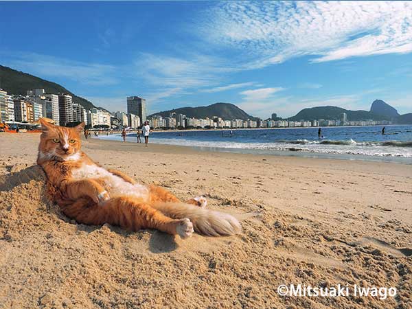 ブラジル・リオデジャネイロ南東部のコパカバーナビーチで愛されるネコ「シキンニョ」や全米最大の都市ニューヨークのピザ屋の看板ネコ「ホワイトスライス」など、同番組で岩合氏が訪れた世界各地から厳選した個性あふれるネコたちの作品を約170点展覧します。