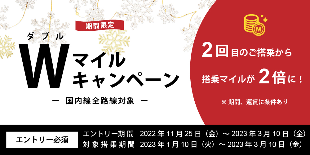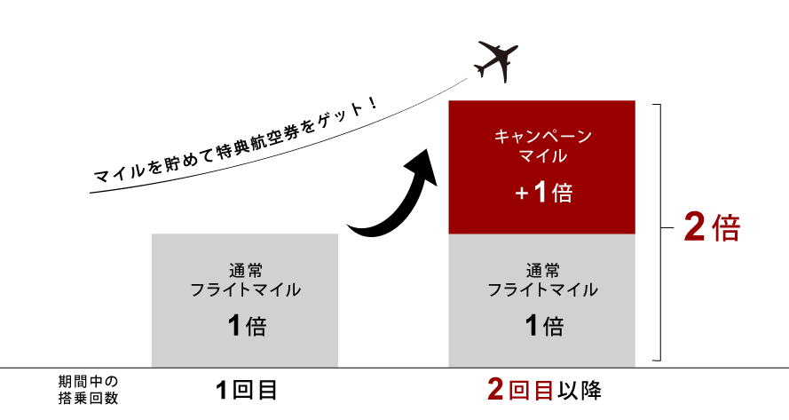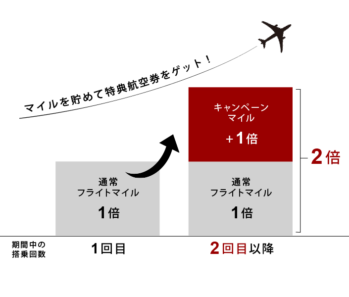 (通常の搭乗積算マイルとは別に付与いたします) - ※対象期間中、2回以上のご搭乗であれば何度でも対象となります。