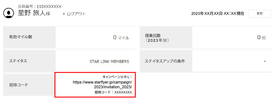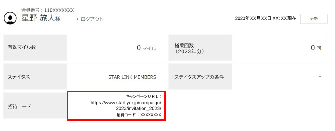 マイル明細登録例:ご紹介キャンペーン 2023 夏