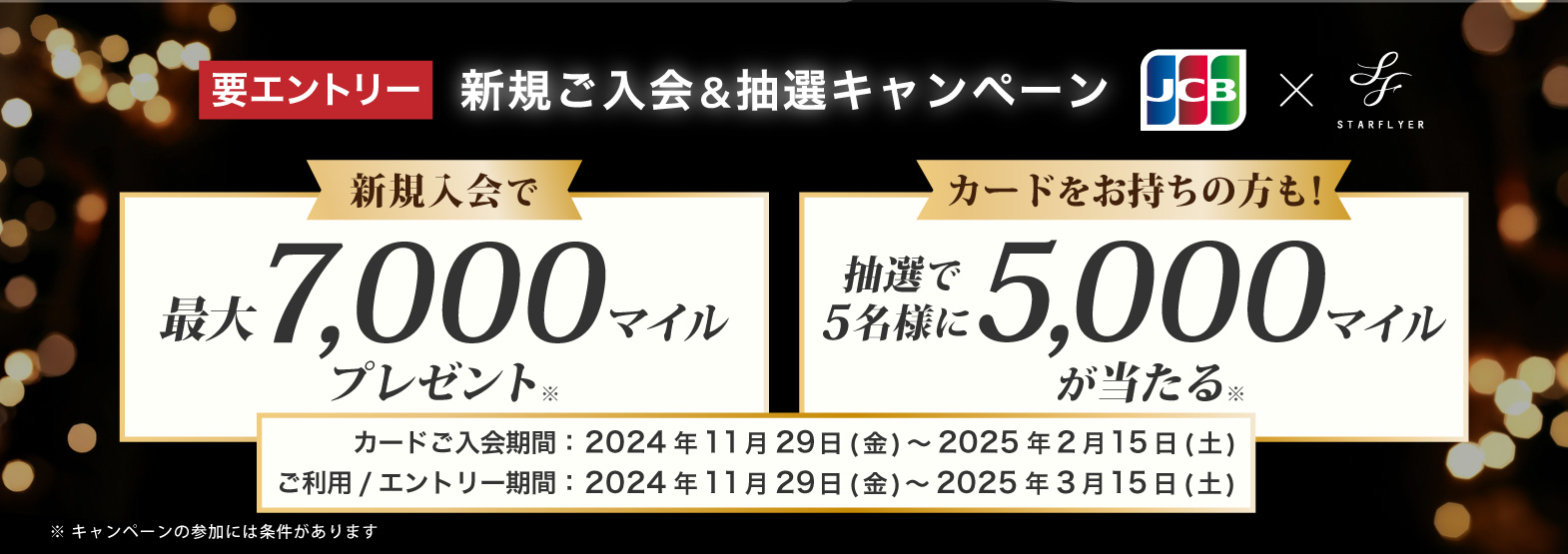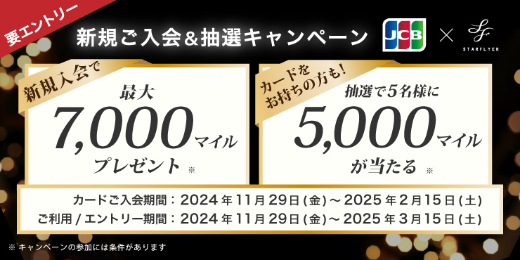 - キャンペーン期間中スターフライヤーJCBカードに新規ご入会いただいた方