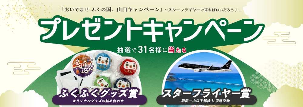 | キャンペーン名称 | おいでませ ふくの国、山口×スターフライヤー プレゼントキャンペーン |