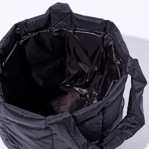 アパレルメーカーTAION のダウンを使用したミニトートバッグです。柔らかく撥水性を兼ね備えた超軽量型でありながら、程よく収納力もあるので、日常使いしやすいバッグです。ランチタイムなどのちょっとしたお出掛けやお散歩用のバッグにおすすめ。男女問わずにお使いいただけるユニセックスアイテムです。