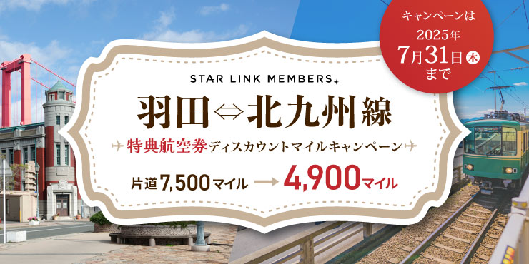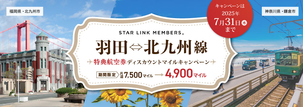 | 羽田(東京)⇄ 北九州 | (R)7,500マイル →4,900マイル |