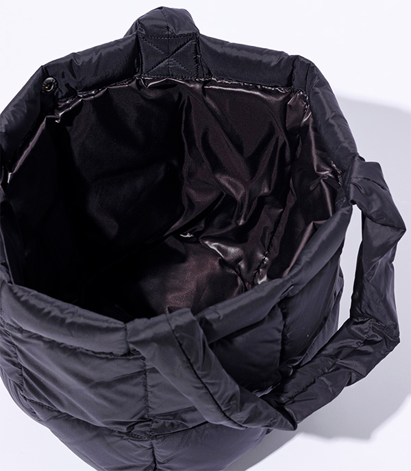 BEAMS LIGHTSプロデュース商品の第二弾は、アパレルメーカーTAIONのダウンを使用したミニトートバッグをご用意しました。柔らかく撥水性を兼ね備えた超軽量型でありながら、程よく収納力もあるので、日常使いしやすいバッグです。ランチタイムなどのちょっとしたお出掛けやお散歩用のバッグにおすすめ。男女問わずにお使いいただけるユニセックスアイテムなので、プレゼントしても喜ばれるバッグです。