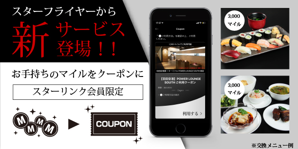 | 羽田(東京)⇄ 北九州、福岡、山口宇部 | (L)5,500マイル →3,000マイル |