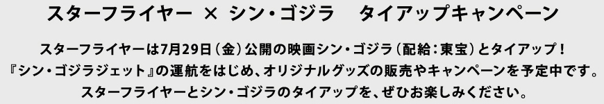 シン・ゴジラジェットやタイアップグッズなど、「STARFLYER×シン・ゴジラに関連するもの」を撮影のうえ、ハッシュタグをつけて、TwitterまたはInstagramへ投稿してください。