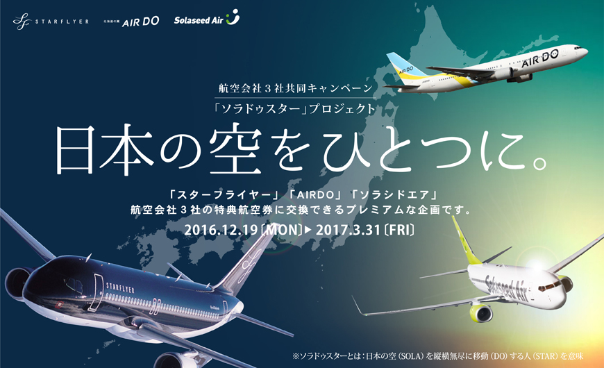 ソラシドエア 2016年12月23(金)〜2017年5月31日(水)ご搭乗分