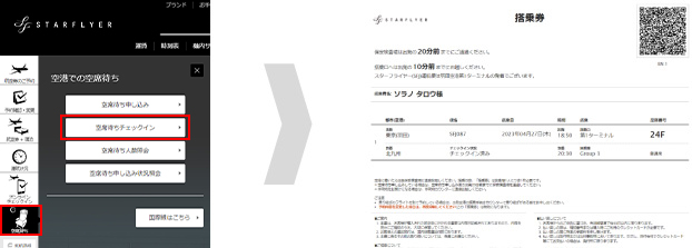 出発24時間前よりスターフライヤー公式サイト、またはスターフライヤー公式アプリよりオンラインチェックインが可能となります。出発20分前までにオンラインチェックインを行い、搭乗券を発行してください。