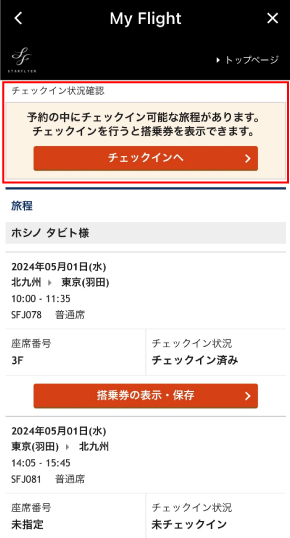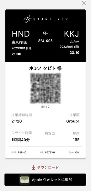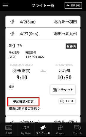 スターフライヤー公式アプリからの操作