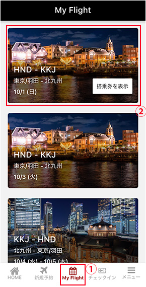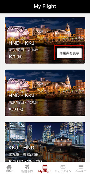 「My Flight」より「搭乗券を表示」をタップ