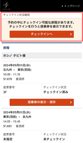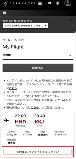 オンラインチェックインと搭乗券の発行方法(スターリンク会員)