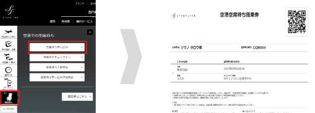 WEBサイトから空席待ちを申し込み、「空港空席待ち搭乗券」を取得してください。