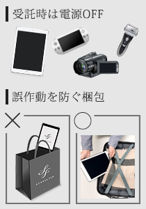 お客様の所持品の中に危険物に該当するものがないか事前にご確認ください。なお、航空機での輸送が可能であるか、出発までに確認が取れない場合は、輸送をお断りすることがありますので、あらかじめご了承ください。