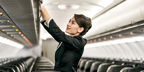 機内でのお手荷物の収納のお手伝いをさせていただきます。お気軽に客室乗務員に声をおかけください。
