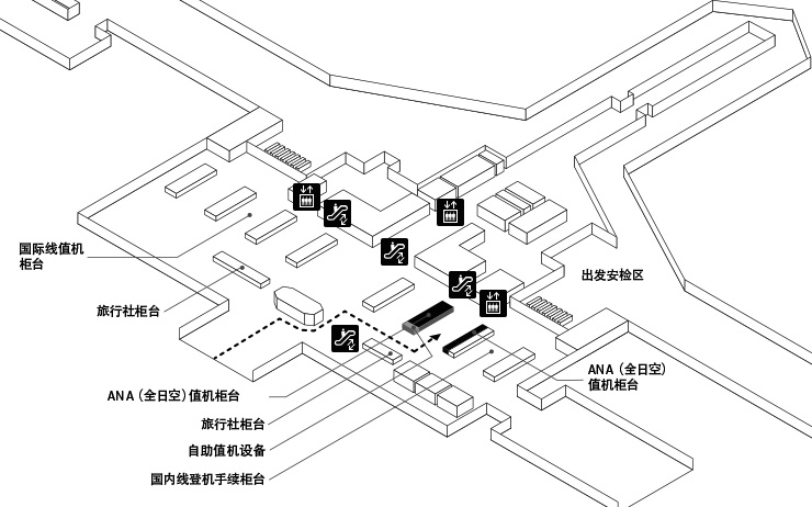 请到旅客候机楼 3楼 国内线出发 ANA(全日空)柜台办理值机手续。